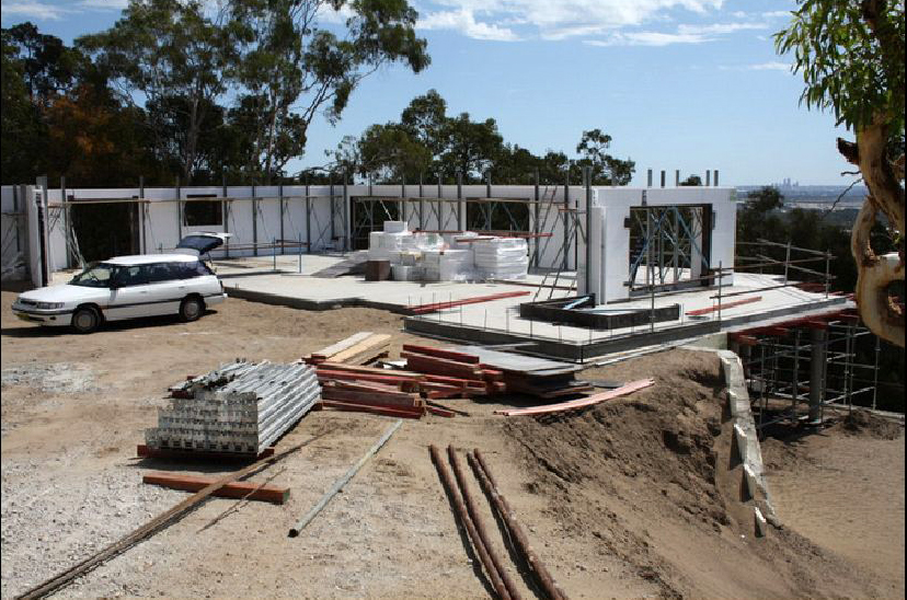 The construction of a Luxury three story home out of ecoblock on a challenging site in Gooseberry Hill.